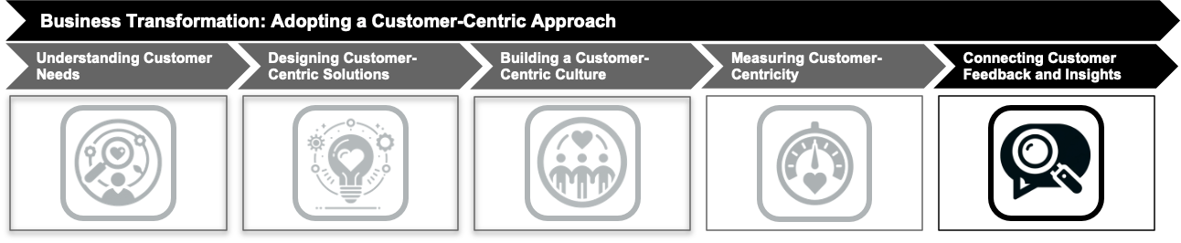 Adopting a customer-centric approach involves a structured, step-by-step process designed to integrate customer needs and feedback into every facet of the business. This process begins with a deep understanding of customer needs through comprehensive feedback mechanisms and data analysis. Next, companies must design customer-centric solutions that address identified pain points and enhance the customer experience. Building a customer-centric culture within the organization is crucial, as it ensures that all employees prioritize customer satisfaction in their daily operations. Measuring the effectiveness of these efforts through key performance indicators and feedback loops allows for continuous improvement. Finally, leveraging real-world case studies and best practices helps to refine strategies and ensure sustained success. By following this process, high-growth companies can achieve meaningful transformation that drives growth and loyalty.