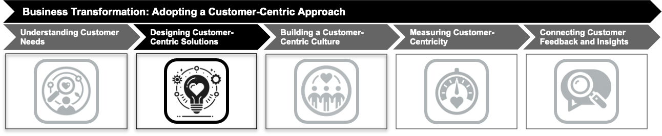 Developing customer-centric solutions requires a collaborative approach that involves co-creating with customers to ensure their needs and expectations are fully met. Principles of design thinking, which emphasize empathy, ideation, and iterative testing, are particularly effective in this context. By engaging customers directly in the innovation process, companies can gain invaluable insights and feedback that drive the development of products and services tailored to their specific challenges. This collaboration not only leads to more effective and relevant solutions but also fosters a sense of partnership and loyalty, as customers feel heard and valued. Integrating customer needs into transformation goals and strategies ensures that the solutions developed are not only innovative but also practical and impactful.