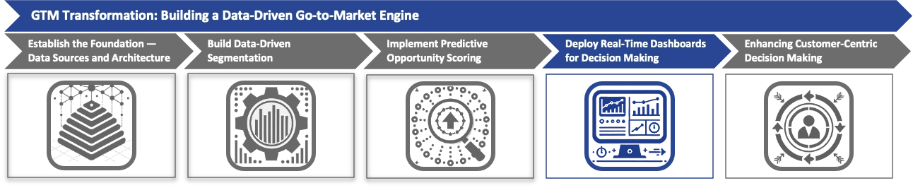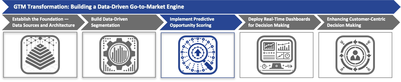 In summary, developing a data-driven Go-to-Market (GTM) engine hinges on integrating key components such as data-driven account segmentation, predictive opportunity scoring, and real-time performance dashboards. These elements work in tandem to create a cohesive GTM strategy that enhances efficiency and alignment across sales, marketing, and customer success functions. By establishing a robust data infrastructure and integrating disparate data systems, senior leaders can build advanced predictive models and deploy dashboards that facilitate informed decision-making at every organizational level.